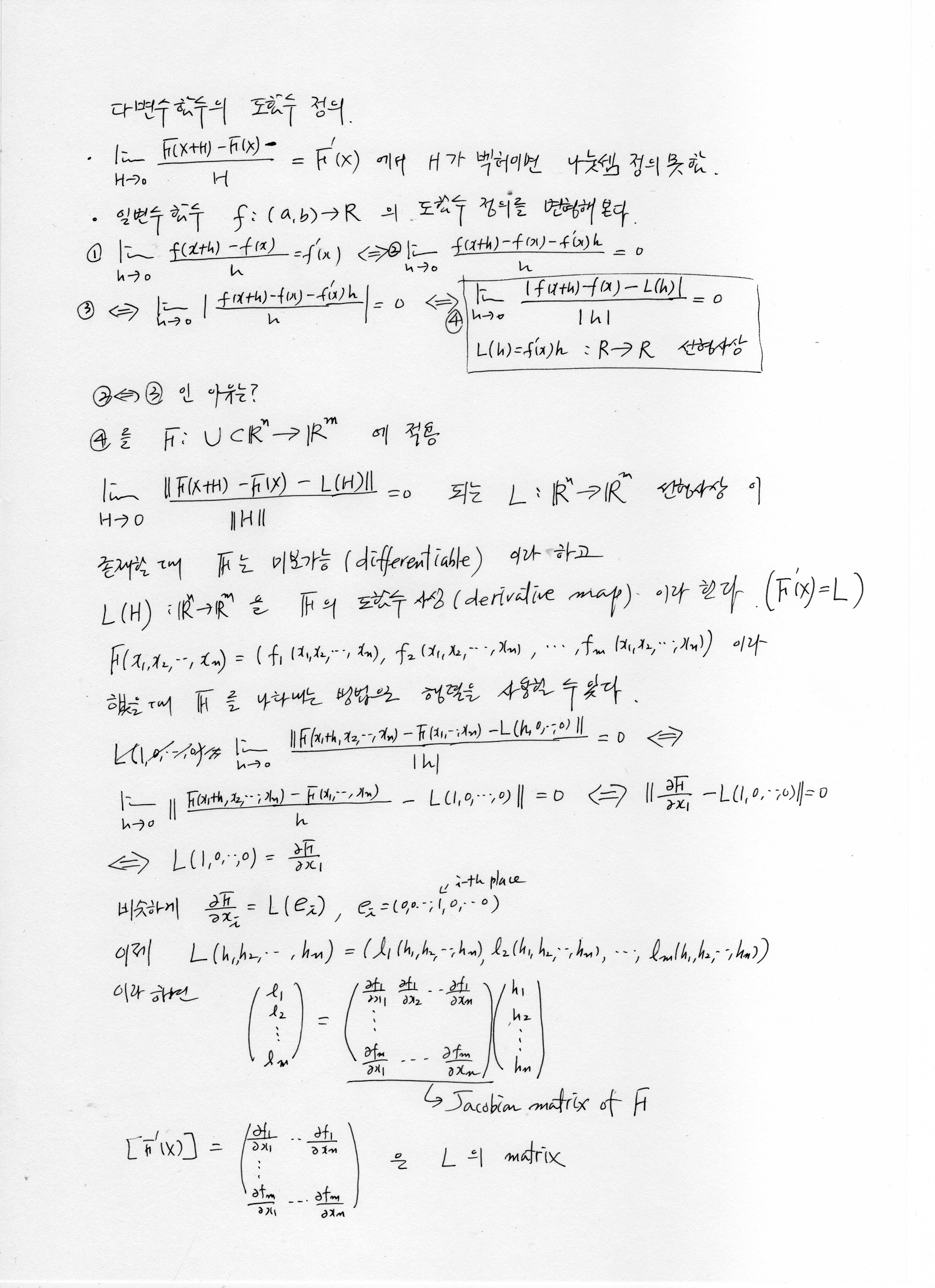 다변수 함수의 도함수 정의
