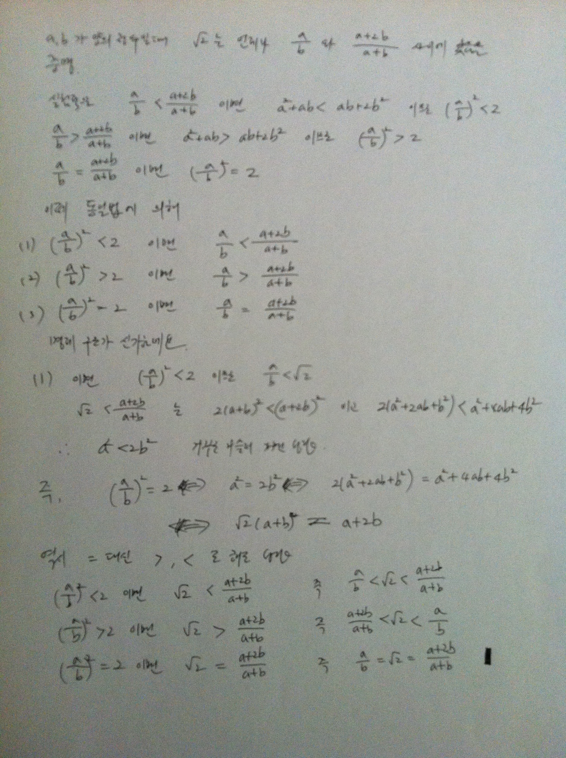 루트 2 는 a/b 와 (a+2b)/(a+b) 사이