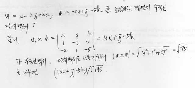 평면에 수직인 벡터를 벡터곱으로 구하기