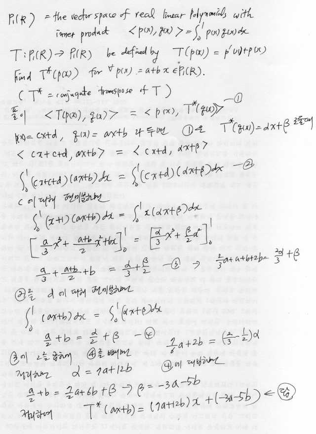 일차 다항식에 대한 선형사상 T(p(x)) = p'(x) + p(x) 의 conjugate transpose