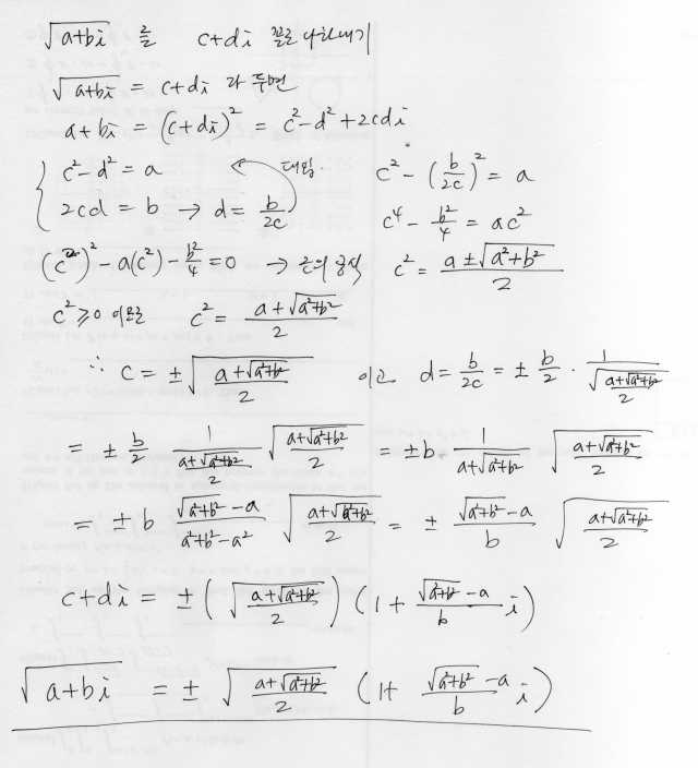 a+bi 의 제곱근을 c+di 꼴로 나타내기