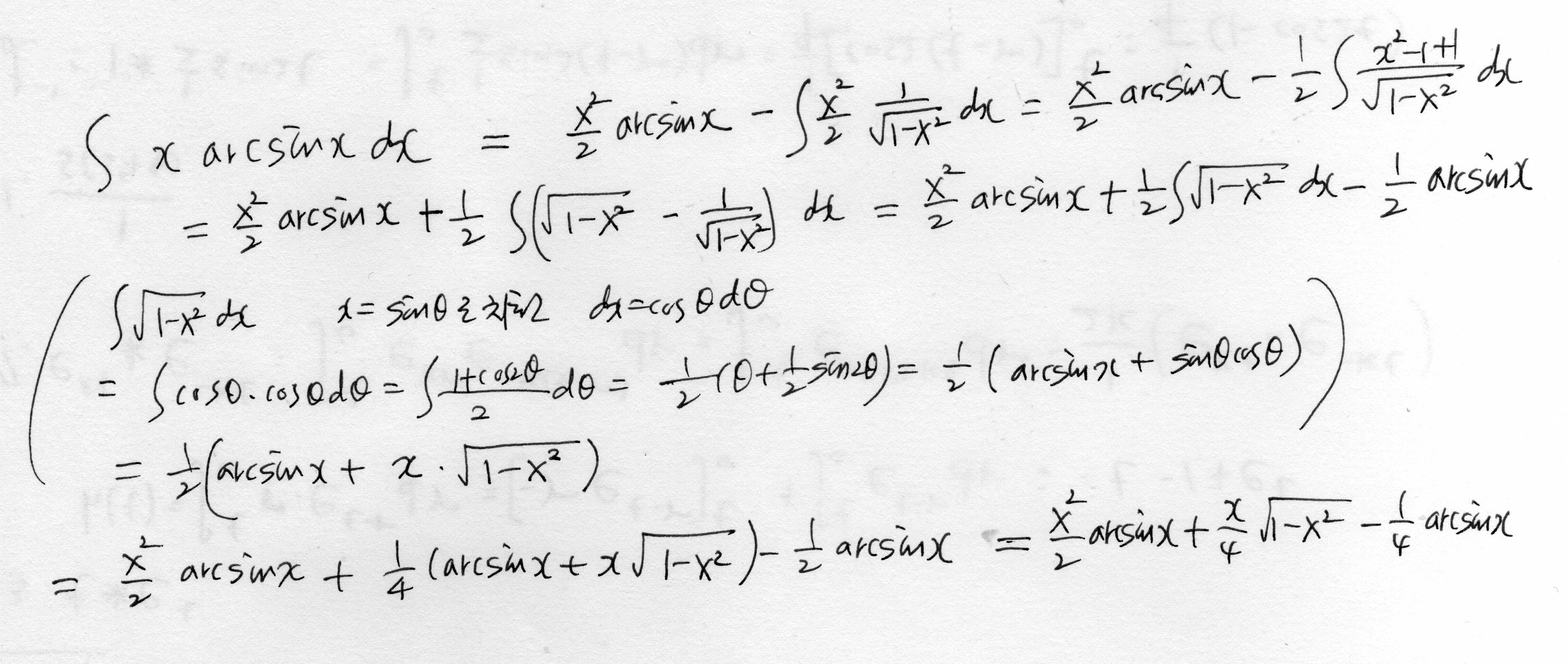 arcsin x 가 들어간 적분을 부분적분으로 구하기 1