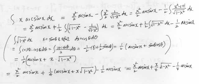 arcsin x 가 들어간 적분을 부분적분으로 구하기