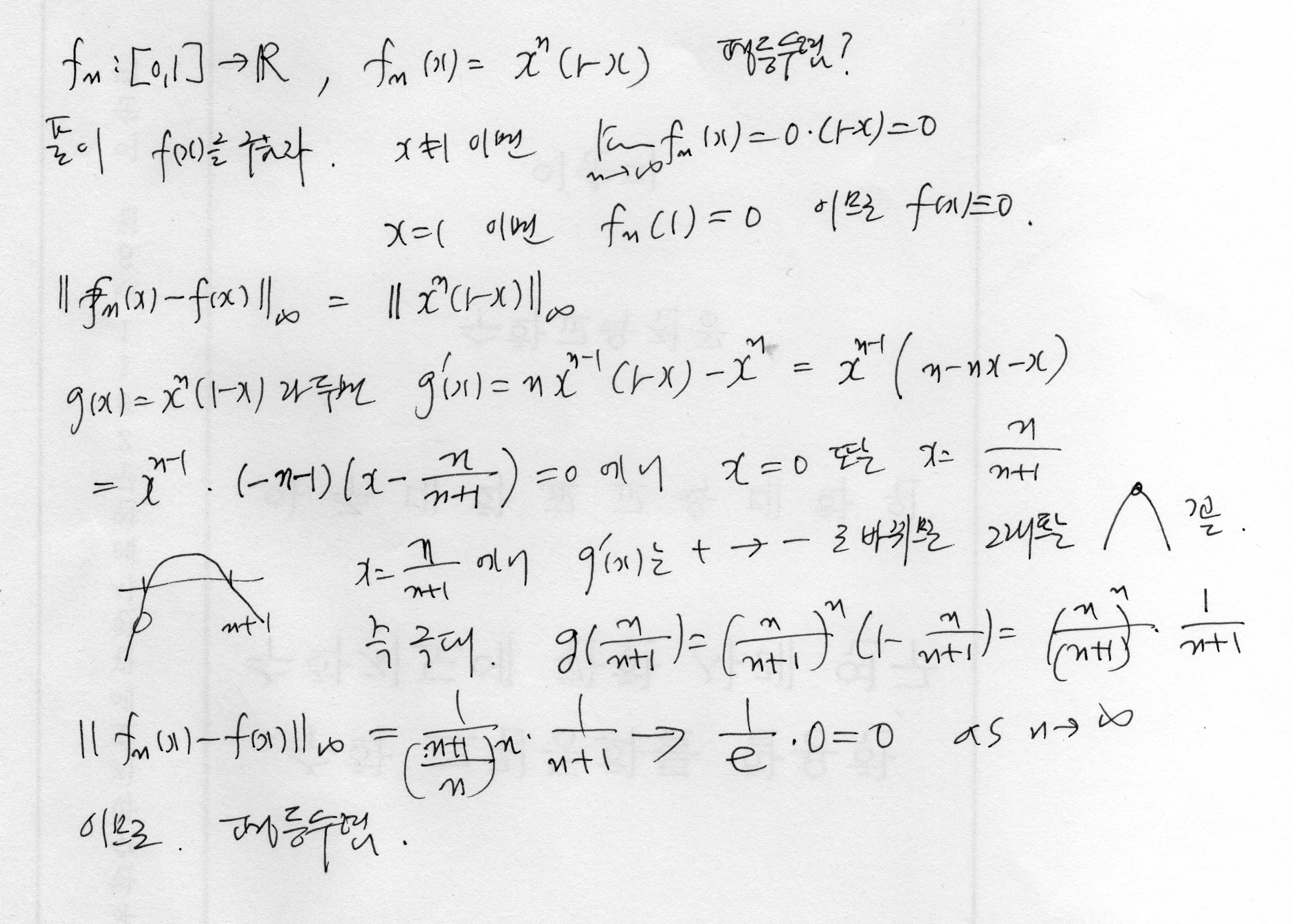 f_n(x) = x^n (1-x) 평등수렴