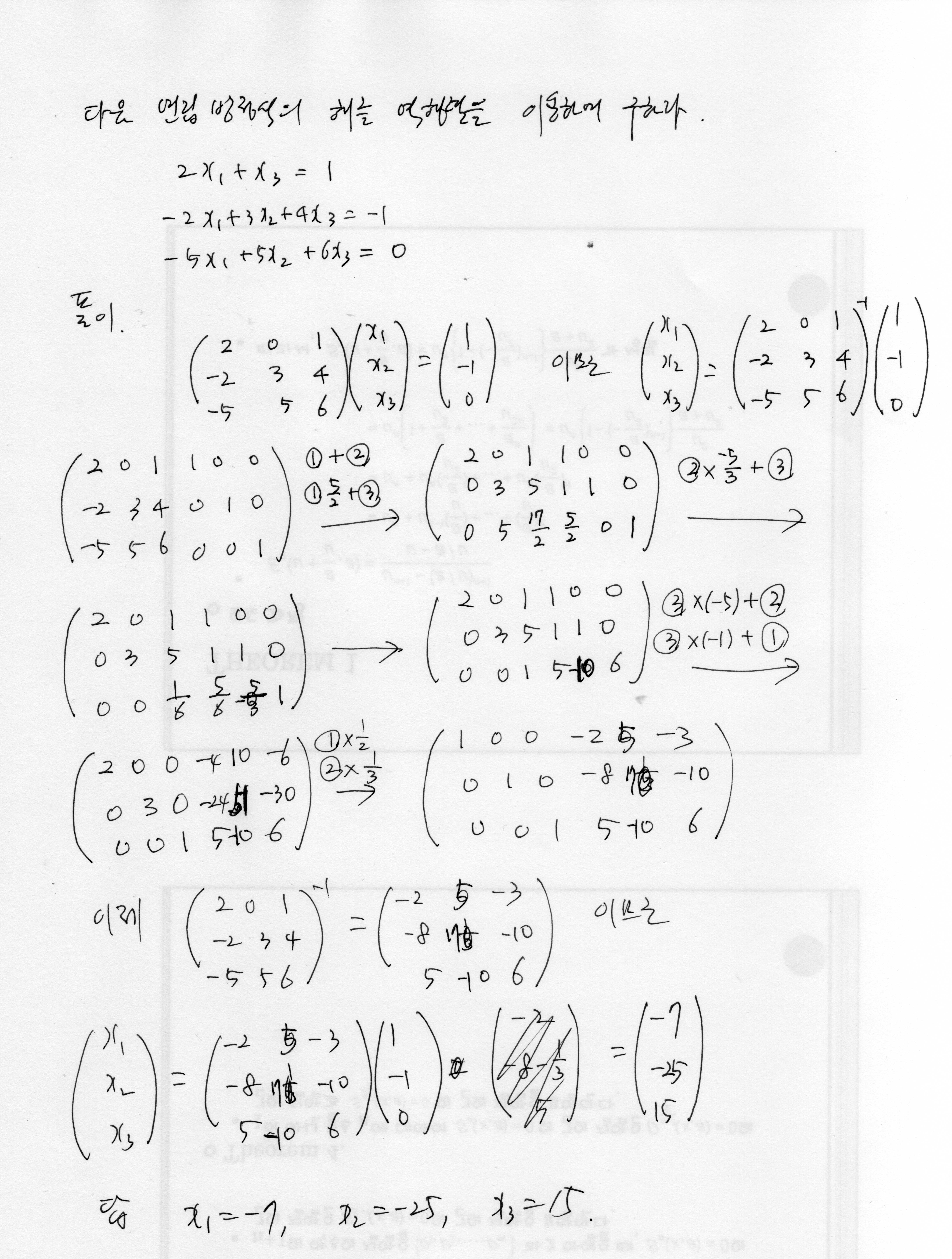 역행렬로 연립방정식 풀기