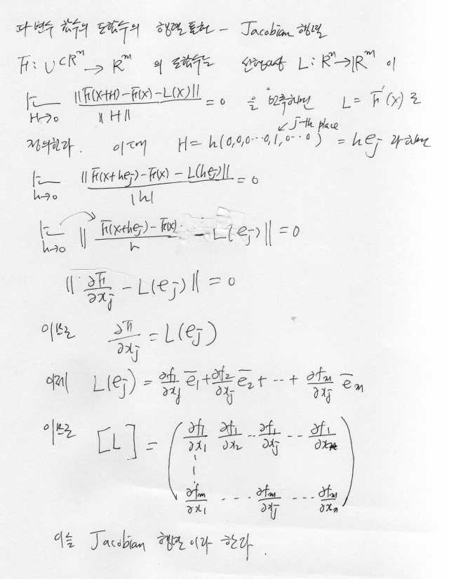 다변수 함수의 도함수의 행렬표현 – 자코비 행렬
