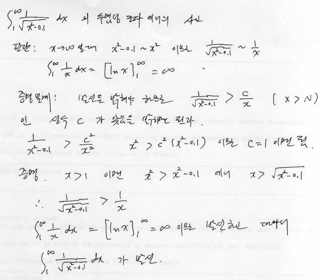 특이 적분 ∫ _1^ ∞ 1/ √(x^2 – 0.1) dx 의 수렴성