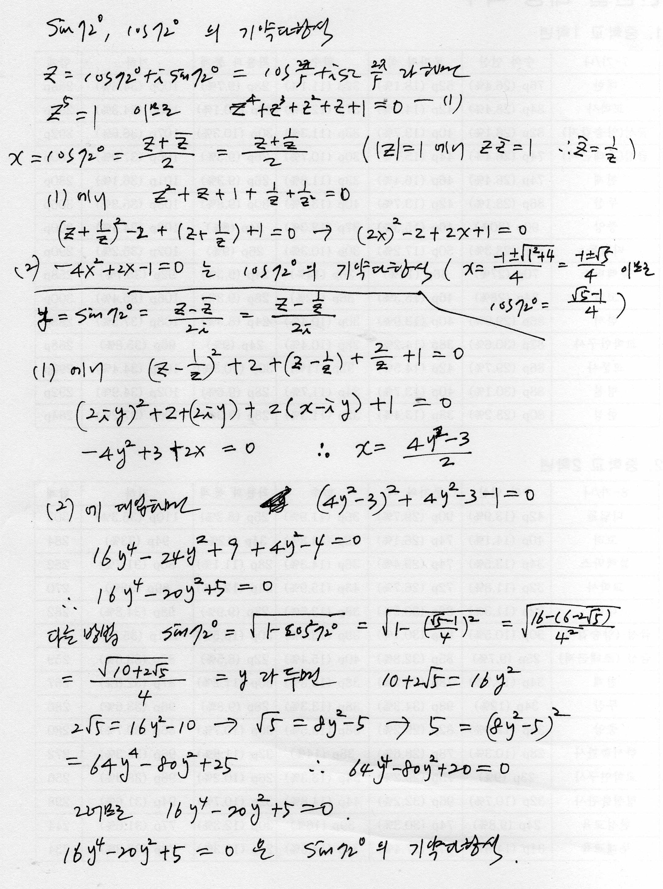 cos 72, sin 72 의 기약다항식(irreducible polynomial)