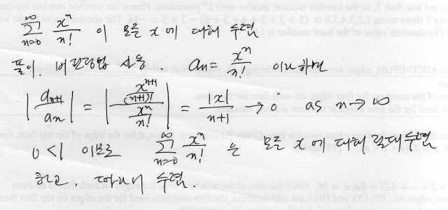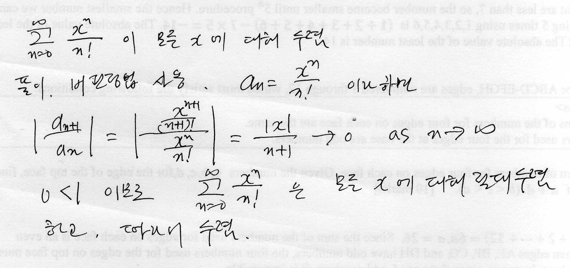 급수 ∑_{n=1}^∞ x^n /n! 은 모든 x 에 대해 수렴