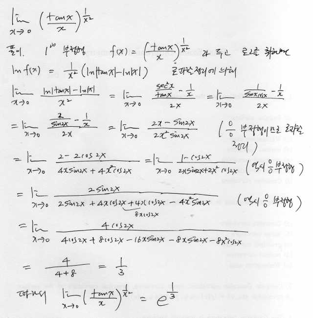 lim_[x->0} (tan x /x)^{1/x^2}