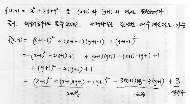 f(x,y) = x^2 + xy +y^2 을 (x+1), (y+1)의 멱으로 전개